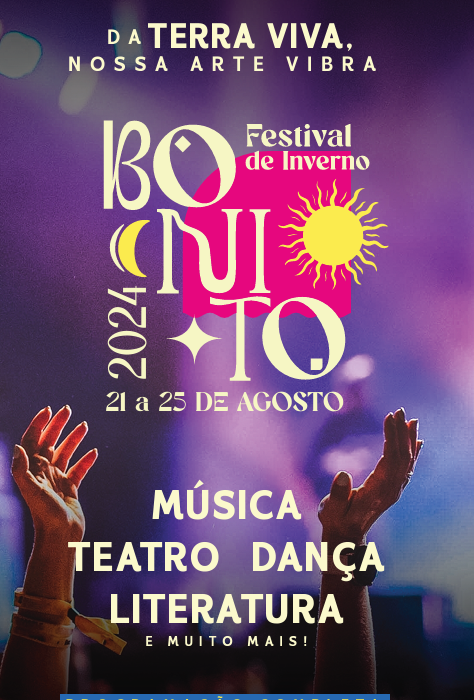 O Festival de Bonito 2024, com o tema “Da Terra Viva, Nossa Arte Vibra”, será um evento cultural diversificado, que reunirá várias formas de expressão artística ao longo de quatro dias. A cidade de Bonito (MS) se transformará em um grande palco para celebrar a cultura brasileira, com atividades que incluem música, dança, teatro, circo, cinema, literatura, moda, gastronomia, artesanato e economia criativa.